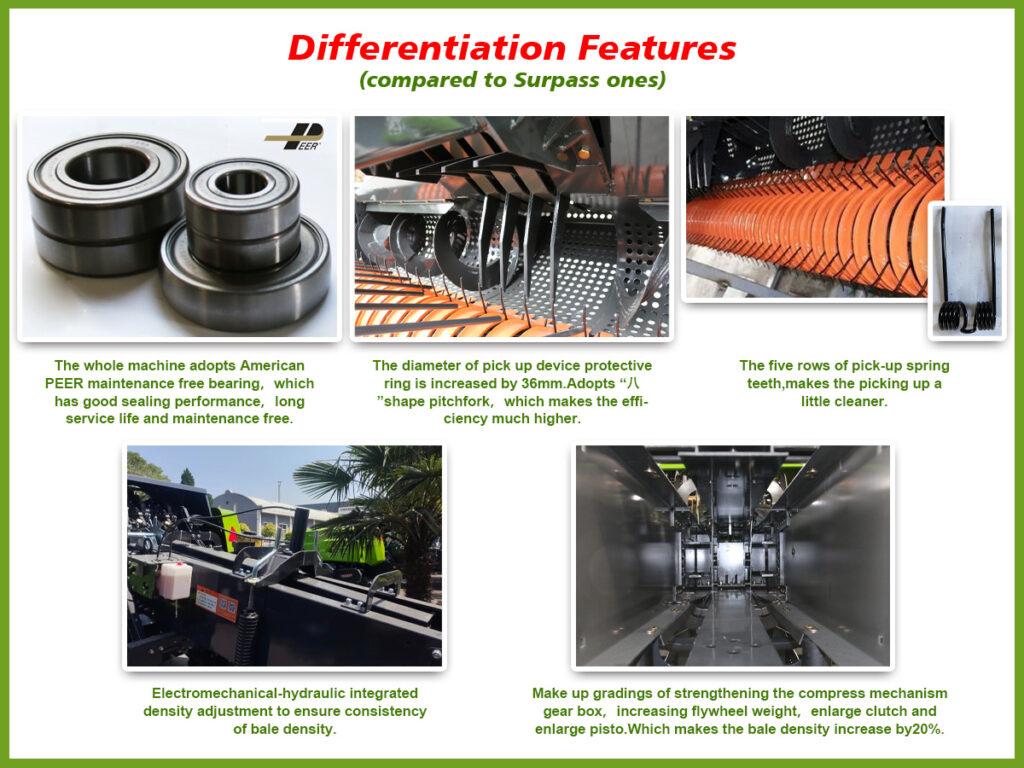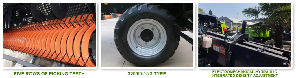 This machine is compatible with tractors that have at least 110 HP and can be operated by a single tractor driver. It is suitable for all types of grassland and farmland operations. Additionally, it can also be used for fixed operations with manual feeding or other methods.